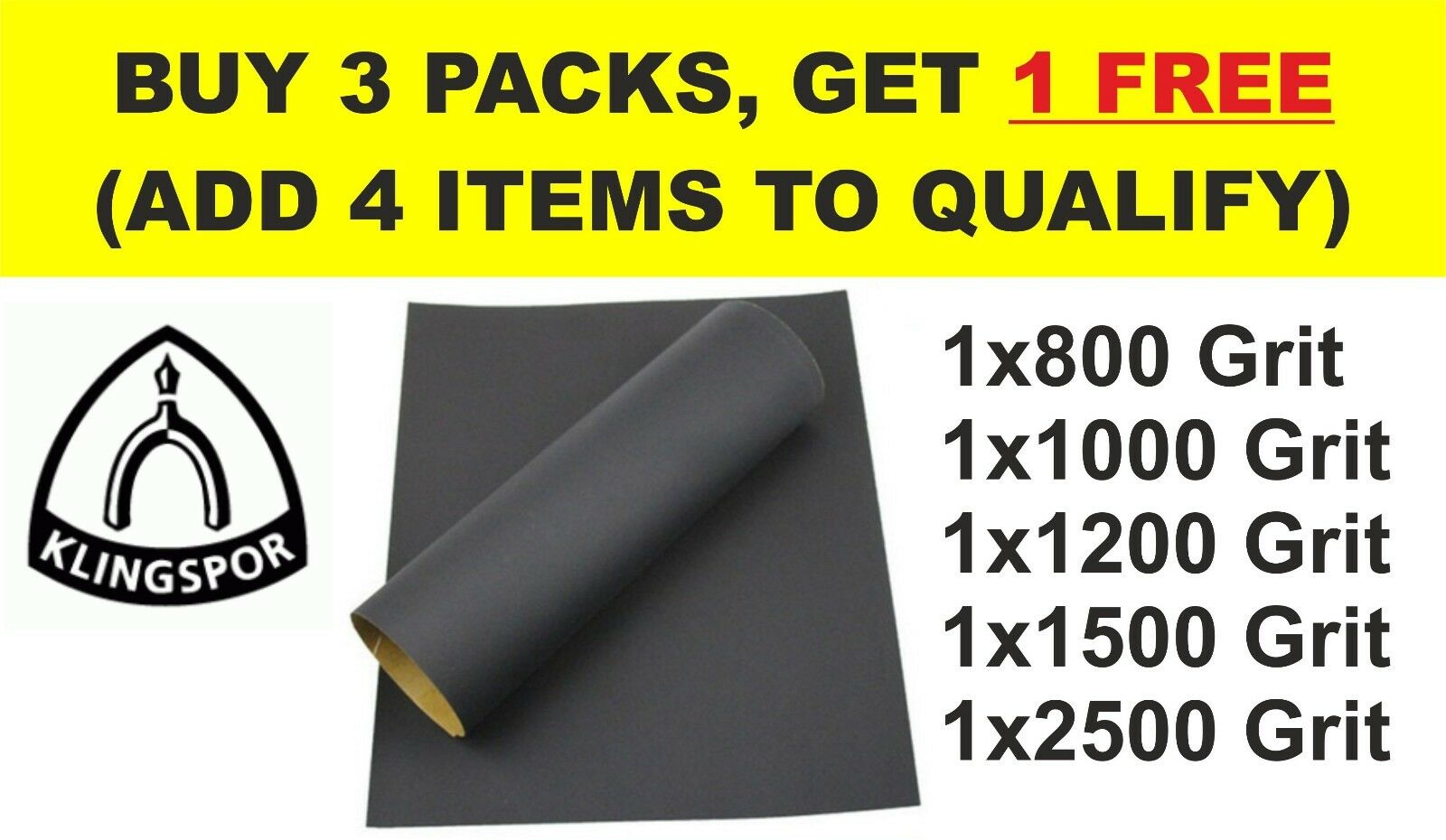 WET-AND-DRY-SANDPAPER-KLINGSPOR-800-1000-1200-1500-2500-Grit-Pack-of-5-sheets-142519948861